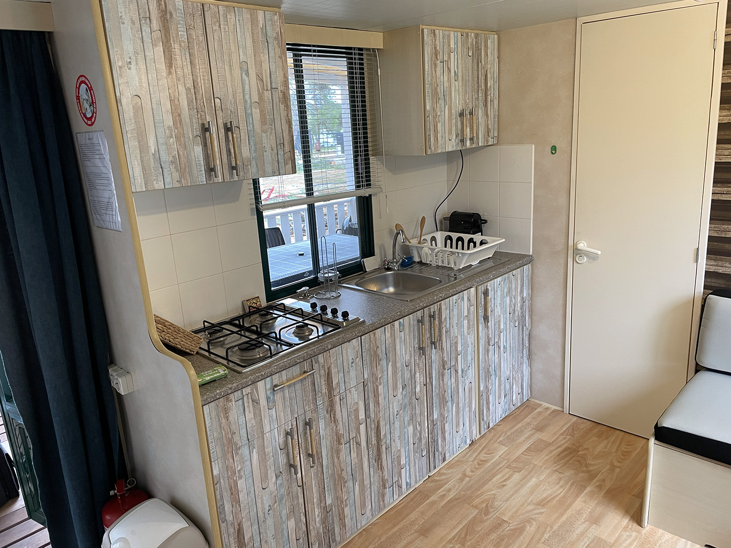 - Szolgáltatások: 2 szoba, Nappali, Saját fürdőszoba, Jól felszerelt konyha, 24 m2 privát terasz, Közvetlen tengerparti elhelyezkedés (80 méterre a parttól), Légkondícionáló, Fűtés, Ingyenes parkolás közvetlenül a mobilháznál 1 autó részére, Wi-Fi, Kényelmes matracok, Hajszárító, Kapszulás kávéfőző | Nespresso kompatibilis, Mikrohullámú sütő